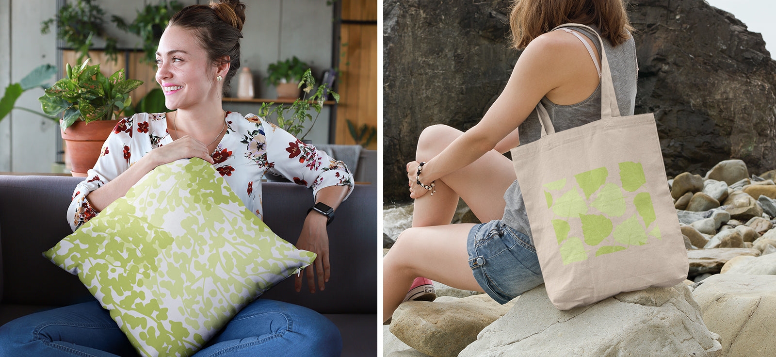 Tropical Leaves Pillow - Home decor - Sand and Sage Green - Gifting