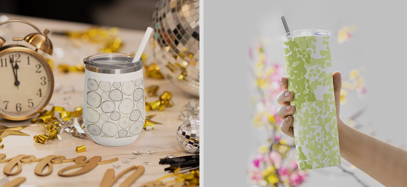 Chic Green Floral Wine Tumbler - Perfect for Outdoor Gatherings & Relaxation