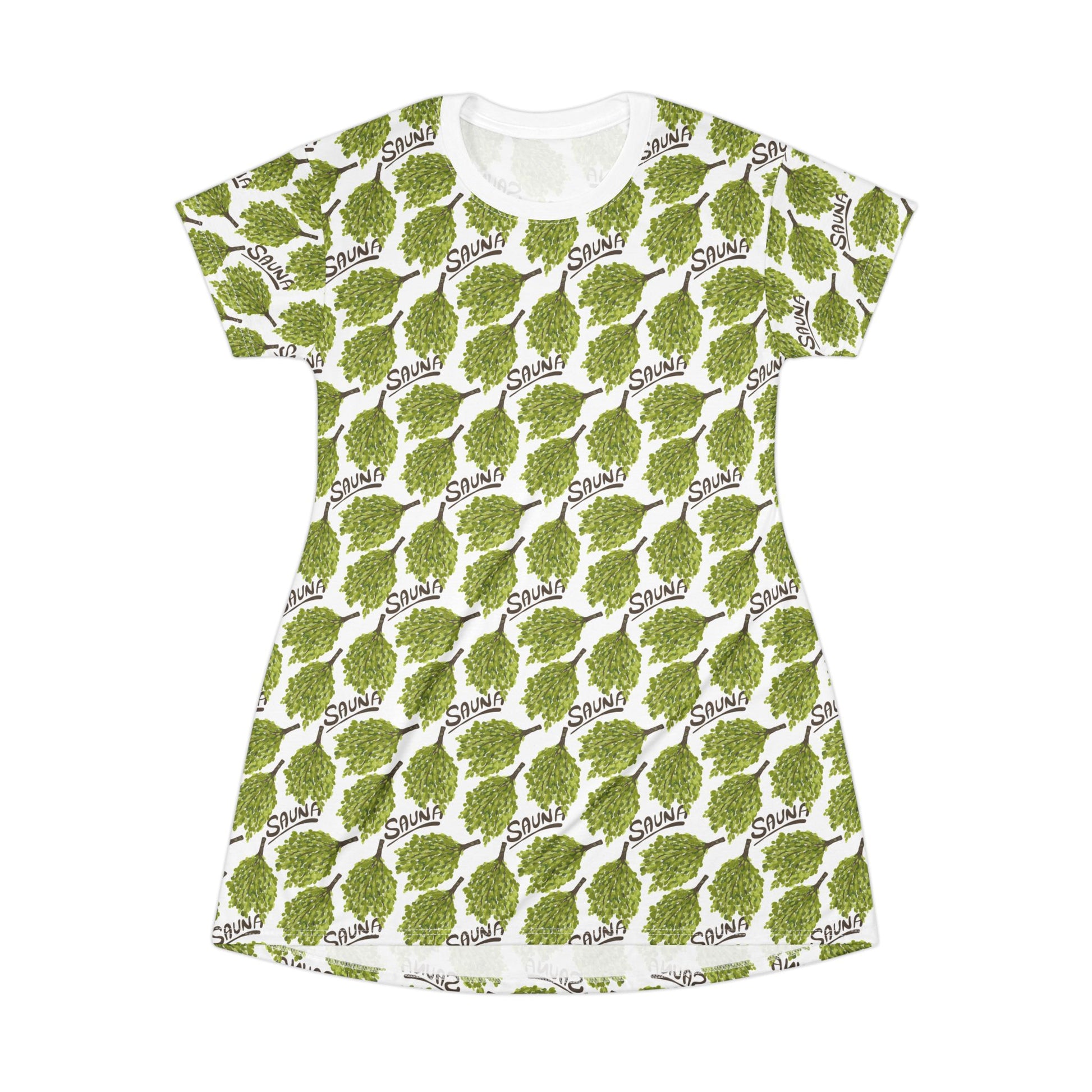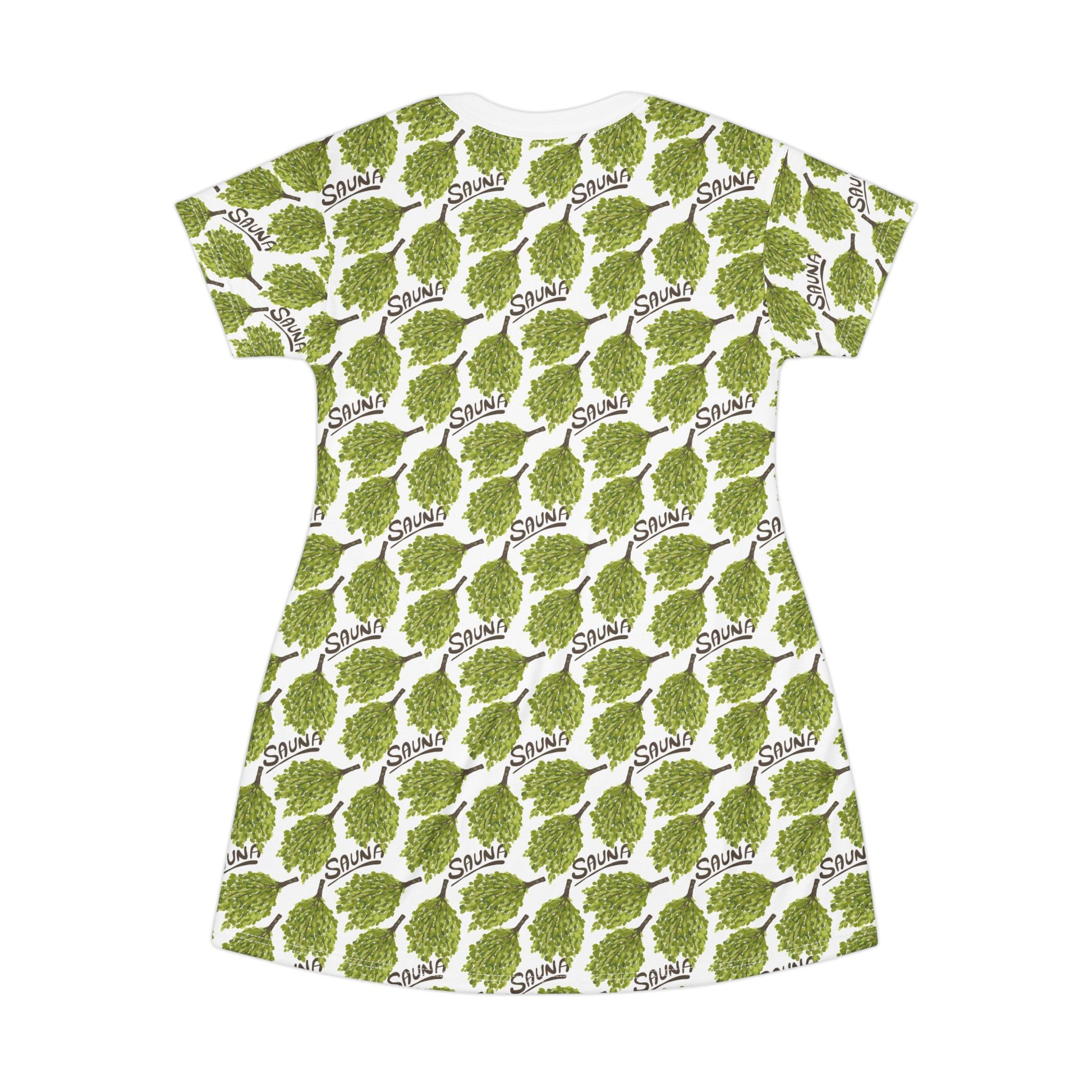 Sauna word and birch whisk print dress made from 100% Polyester fabric. Light and comfortable, perfect for relaxing at home or casual outings. Ideal for those who enjoy sauna culture and nature-inspired prints. Great for sauna enthusiasts, nature lovers, and those who appreciate unique prints. Perfect for summer, spa days, or relaxation-themed events.